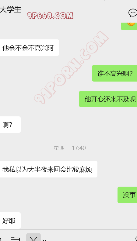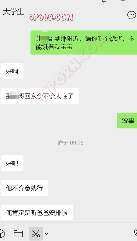 周三晚上,我和两个同事一起吃饭,同事2比较腼腆,我逼着他跟大学生聊天,然后让他去找他,也很顺利的办了。她一直催我见她,我也没见。不过昨天晚上我去了一趟。做爱的时候一直在试探她和我同事1是否发生了什么,她都否认。她问我是不是我安排他两认识她,就是想让他两上她,我也否认,不过做的时候她同意了,三人一起草。改天组织一场吧。
